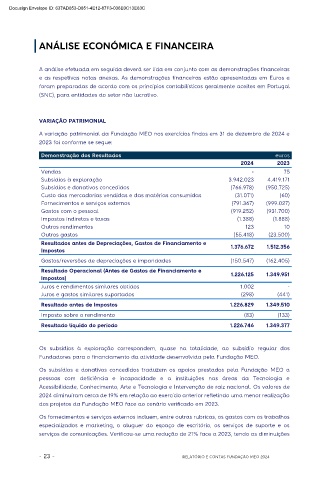 - 23 - RELATÓRIO E CONTAS FUNDAÇÃO MEO 2024